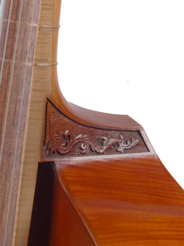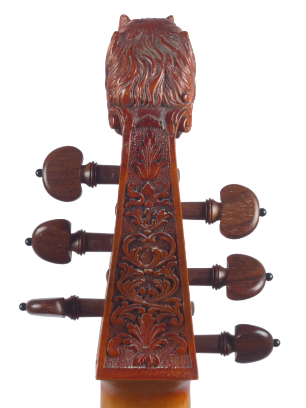 Im Besitz des Pariser Instrumentenmuseums befindet sich neben einer Pardessus- und einer siebensaitigen Basse de viole auch eine Dessus de viole von Nicolas Bertrand von 1721, die jedoch nicht in der Ausstellung zu sehen ist. Vor etlichen Jahren (als das Museum noch zum Conservatoire gehörte) hatte ich die Gelegenheit einige Fotos und Maße dieses Instruments abzunehmen. Auffällig war mir die geringe Größe des Instruments mit 358 mm Korpuslänge. In den 1990er Jahren habe ich dieses Modell öfter als Grundlage für meine Diskantgamben verwendet bevor ich dann zu einem Barak Norman Modell gewechselt bin. 2021 habe ich interessehalber das Bertrandmodell noch einmal aufgegriffen.